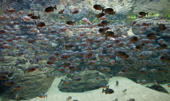 Oplev en fisk med et farligt omdømme. I regnskoven finder du Nordeuropas største stime af piratfisk under et plaskende vandfald. De 2000 sultne piratfisk har barberskarpe tænder og kan fortære middagsmaden hurtigere, end du kan sige piratfisk.
